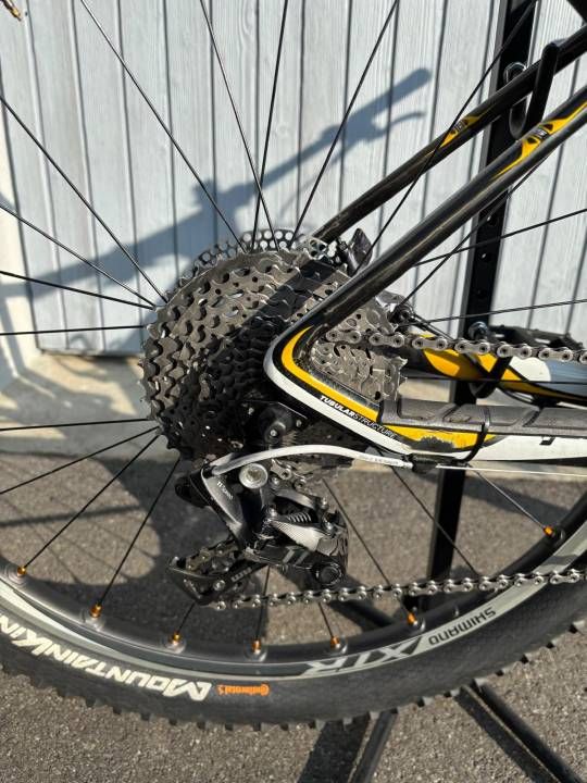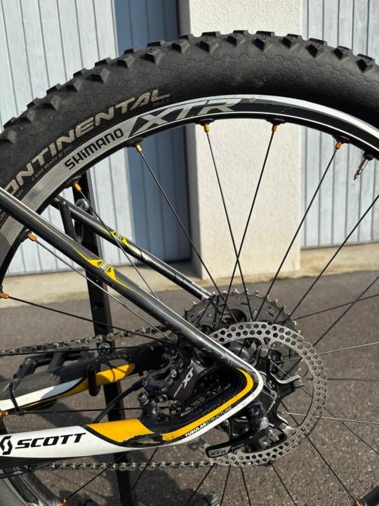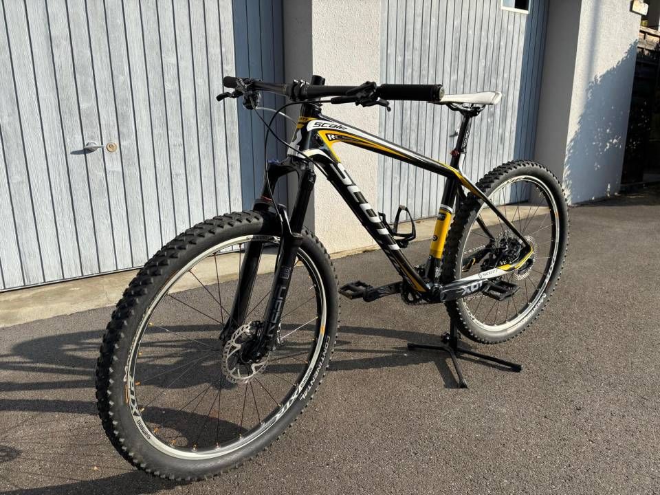 Scott Scale RC 26 Zoll Carbon Hartail mit XTR Radsatz. 100mm RockShox Reba Gabel mit Lockout. Schaltung 1mal 11 Sram X1/ XO Komponenten plus XT 4 KolbenBremse. Bike wurde vor 5Jahren neu aufgebaut und ist sehr leicht. Ideall für jungen Rennfahrer!