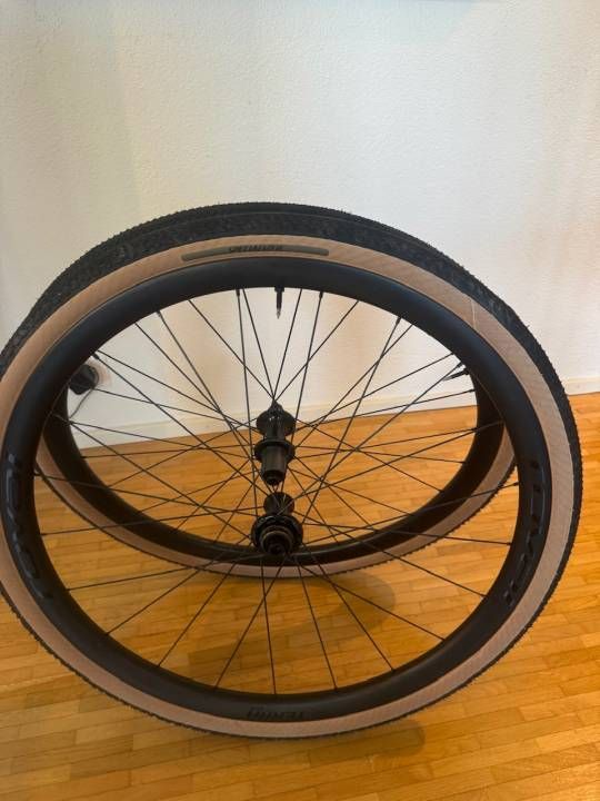 Roval-Laufradsatz mit 45mm Pathfinder-Reifen. Die Laufräder sind in hervorragendem Zustand, wenig genutzt und weisen nur minimale Abnutzung auf. Tubeless Ready für optimale Performance.1300 g